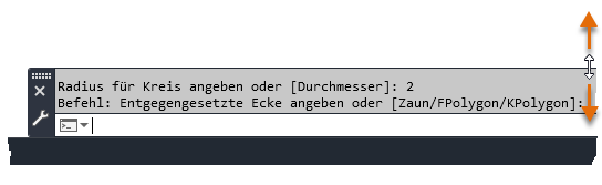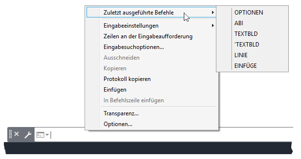 AutoCAD protokolliert die zuletzt verwendeten Befehle und eingegebenen Werte.