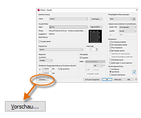 Das sich öffnende Fenster Voransicht enthält einen Werkzeugkasten mit mehreren Steuerelementen, z. B. Plotten und Voransichtsfenster schließen.