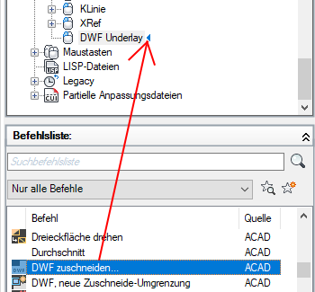 5. Wenn Sie den aktuell zugewiesenen Befehl für die Doppelklickaktion ersetzen möchten, ziehen Sie einen Befehl aus dem Bereich Befehlsliste auf die Doppelklickaktion im Bereich Anpassungen in <Dateiname>.