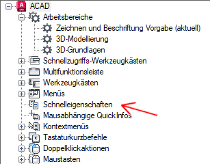 1. Wählen Sie auf der Registerkarte Anpassen im Bereich Anpassungen in <Dateiname> die Option Schnelleigenschaften.