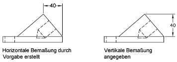 Sie können Bemaßungen verwenden, indem Sie ausschließlich die horizontalen oder vertikalen Komponenten der von Ihnen angegebenen Positionen oder Objekte verwenden.