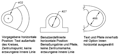 Wie in den Abbildungen gezeigt, können Sie verschiedene Stile für Durchmesserbemaßungen erstellen.