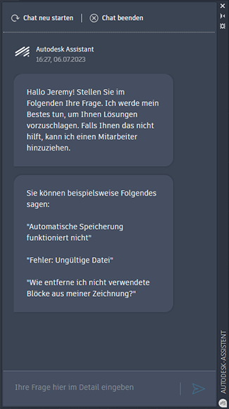 Beendet die Unterhaltung und schließt den Autodesk-Assistenten.