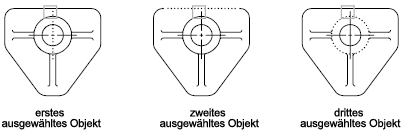 Im Allgemeinen ist es schwierig, Objekte auszuwählen, die nahe beieinander oder direkt übereinander liegen. Im Beispiel werden zwei Linien und ein Kreis gezeigt, die sich innerhalb der Pickbox befinden.