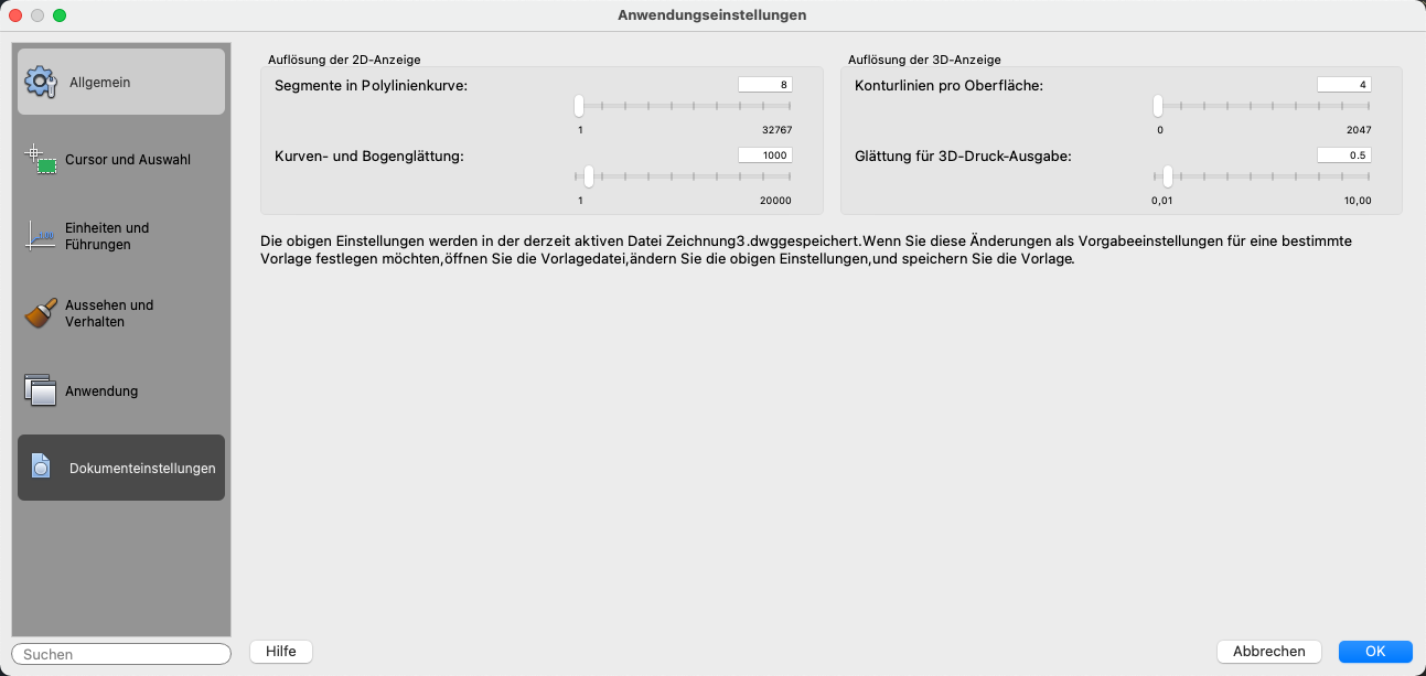 Steuert die Anzeigeeinstellungen für eine Zeichnung.
