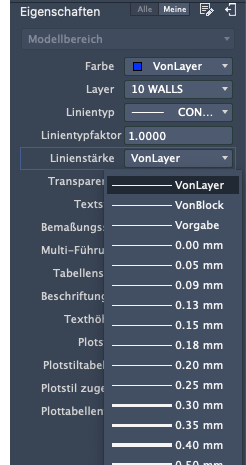 Unabhängig davon, wie die Linienstärken auf dem Bildschirm angezeigt werden, werden Objekte immer mit der von Ihnen angegebenen Linienstärke gedruckt.