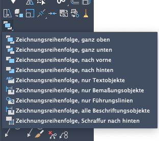 Erweitern Sie die Dropdown-Liste, um Optionen für die Zeichnungsreihenfolge anzuzeigen, darunter das Verschieben aller Schraffuren nach hinten, der ausgewählten Objekte nach vorne usw.