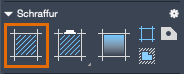 Wenn Sie den Befehl SCHRAFF aufrufen, wird die Schraffur-Bildleiste vorübergehend angezeigt. Auf dieser Bildleiste können Sie aus britischen Branchenstandard- und ISO-Schraffurmustern auswählen. Außerdem stehen Ihnen zahlreiche spezielle Optionen zur Verfügung.