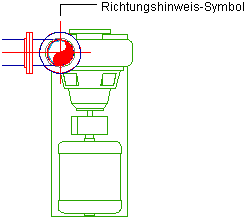 AutoCAD MEP 2024-Toolset zeigt Symbole an, die besondere Bedingungen im Layout darstellen. Beispielsweise stellen Richtungshinweis-Symbole die Erhebungsrichtung vertikaler Segmente im Layout für vordefinierte orthogonale Ansichten (oben, unten, links, rechts, vorne oder hinten) dar.