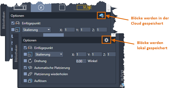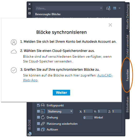 Wenn Sie nach diesem Update Ihre Blöcke über Ihr Konto bei Autodesk Account mit einem Cloud-Speicheranbieter synchronisieren, sind Ihre