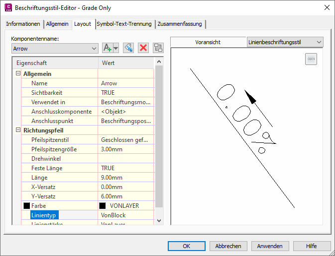 Abbildung 6: Konfiguration von Pfeilen vom Typ Neigungsüberprüfung im Beschriftungsstil Grade Only