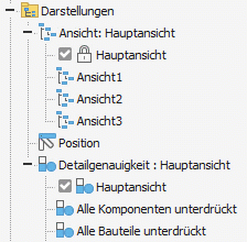 Über das Browser-Kontextmenü können Sie mehrere Konstruktionsansichtsdarstellungen schnell sperren und entsperren.