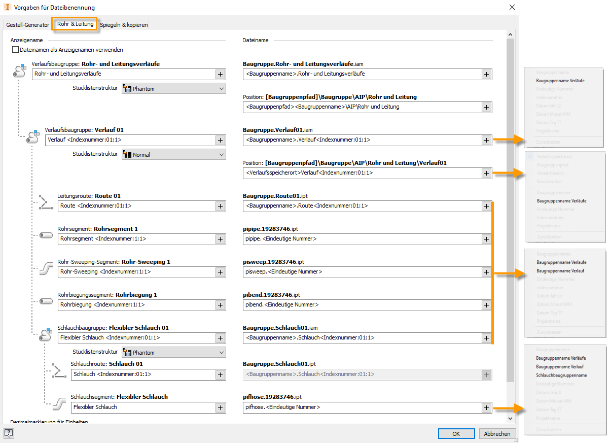 Weitere Informationen finden Sie unter So passen Sie die Ordnerstruktur für Rohre und Leitungen an.