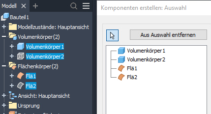 Auswählen von Flächenkörpern beim Erstellen von Komponenten