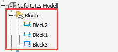 Es ist jetzt möglich, Skizzenblöcke im Browser neu anzuordnen. Sie können mehrere Skizzenblöcke gleichzeitig auswählen, um sie neu anzuordnen. Nur die untergeordneten Elemente der ersten Ebene können neu angeordnet werden.