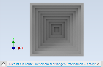 - Auf Dokumentregisterkarten wird ein größerer Teil des Dokumentnamens angezeigt. Die Größe der Registerkarten wird anhand der Anzahl der geöffneten Dokumente und der Fenstergröße geändert.