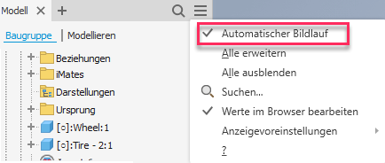 Wählen Sie die neu hinzugefügte Option Automatischer Bildlauf aus, um automatisch einen Bildlauf durchzuführen und das ausgewählte Objekt oben in der Liste anzuzeigen.