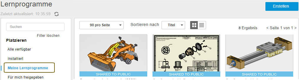 - Legen Sie den Filter Platzieren auf Meine Lernprogramme fest.