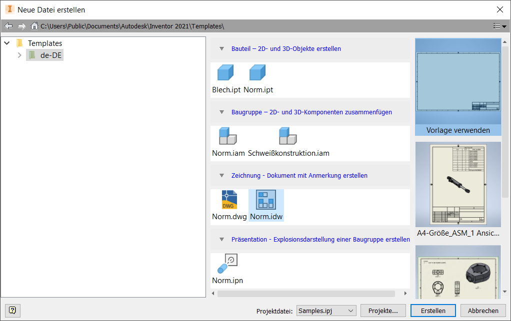 Weitere Informationen finden Sie unter Beispiele für das Erstellen einer neuen Zeichnungsdatei.