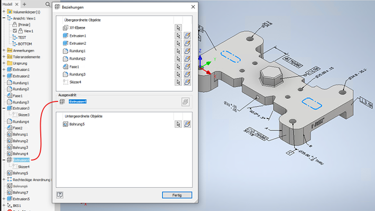 Weitere Informationen finden Sie unter So finden Sie Beziehungen im Bauteil.