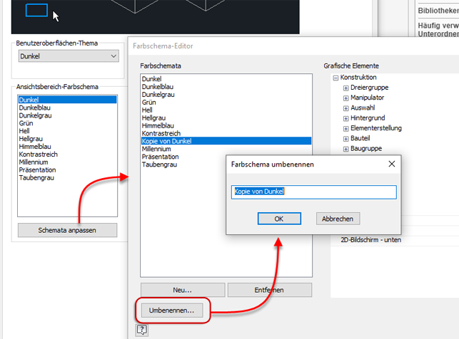 Benennen Sie benutzerdefinierte Farbschemata im Editor um.