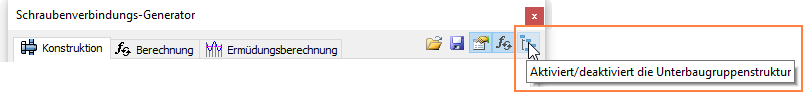 Das Dialogfeld Schraubenverbindung enthält nun einen Schalter, der das Einfügen der Verbindung als einzelne Komponenten oder als Unterbaugruppe in die Hauptbaugruppe unterstützt.
