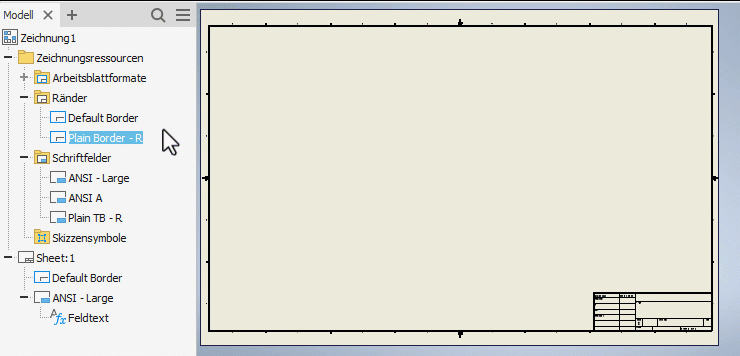 Weitere Informationen finden Sie unter So arbeiten Sie mit Schriftfeldern bzw. So arbeiten Sie mit Zeichnungsrahmen.