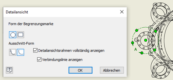 Wenn beim Erstellen von Ausschnittansichten das Ausschnittprofil eine offene Kontur ist, wird eine Fehlermeldung angezeigt. Mit dem neuen Arbeitsablauf gelangen Sie in den Modus Skizze bearbeiten, sodass Sie die Kontur schließen, die Skizze fertig stellen und die Ansichtserstellung abschließen können. Wenn die Ansicht mehrere Skizzen mit offenen Konturen enthält, wird der Befehl mit einer Fehlermeldung beendet, und Sie können die entsprechende Skizze bearbeiten.