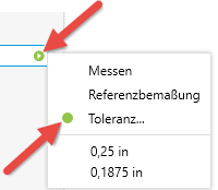 In den Voreinstellungen werden jetzt Toleranzinformationen für die Wertfelder gespeichert. Sie können über das Flyout-Menü des Felds auf das Dialogfeld Toleranz zugreifen. Um zur Einstellung ohne Toleranzwert zurückzukehren, legen Sie den Toleranztyp auf Vorgabe fest und speichern die Voreinstellung. Wenn ein Wert über eine Toleranz verfügt, wird das Steuerelement für die Wertänderung mit einem farbigen Hintergrund unter dem Flyout-Pfeil und im Flyout-Menü angezeigt.