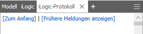 | Nach dem Sie die Meldungen aus der Gruppe gelöscht haben, werden Navigationslinks oben in der Gruppe angezeigt, sofern ältere Meldungen verfügbar sind. | In der Gruppe iLogic-Protokoll können maximal 20.000 Meldungen auf einmal angezeigt werden. Wenn mehr als 20.000 Meldungen eingegeben werden, können Sie mithilfe der Navigationslinks im unteren Bereich der Gruppe auf die Meldungen zugreifen, die nach Erreichen der Grenze von 20.000 erstellt wurden. |
