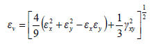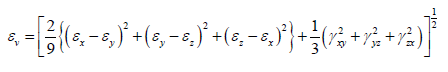 Shell elements are defined by a state of plane stress. The von Mises strain for