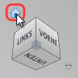 Klicken in die Nähe der linken unteren Ecke des ViewCube, um den Modellansichtspunkt zu ändern. Dies ist die Stelle, an der sich die VORDERE, LINKE und UNTERE Fläche des ViewCube treffen. Die Ecke des ViewCube wird blau, wenn sich der Mauszeiger im richtigen Klickbereich befindet. Die Eckenkante, für die die Abhängigkeit gelten soll, ist im neuen Modellansichtspunkt deutlich sichtbar.