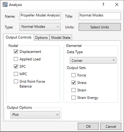 Geben Sie Propeller Modal Analysis als Name und Normal Modes als Titel ein. Wählen Sie Normale Modi im Dropdown-Menü Typ.