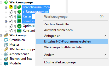 Erstellen eines NC-Programms für jeden Werkzeugweg