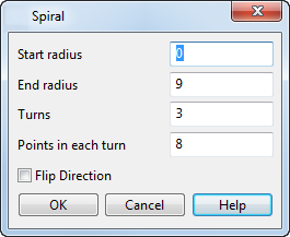 - Verwenden Sie das Dialogfeld Spirale, um die Abmessungen der Spiralkurve festzulegen: