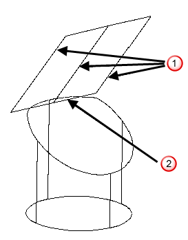 Tipp: Wenn Sie an einer Oberfläche anheften, können Sie die Tangentenwinkel entlang der Kurve der Quellfläche ändern, um diese an die Tangentenwinkel der Zielfläche anzupassen.