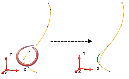 Die Drahtmodellkontur und die Kurven-Werkzeuge-Registerkarte werden angezeigt. Die Schaltflächen