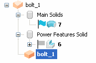 2. Wählen Sie Ändern > Geometrie im Kontextmenü. Die Geometrie der Komponente wird angezeigt, und im Baugruppenbaum werden die PowerMerkmale und das Haupt-Volumenmodell angezeigt: