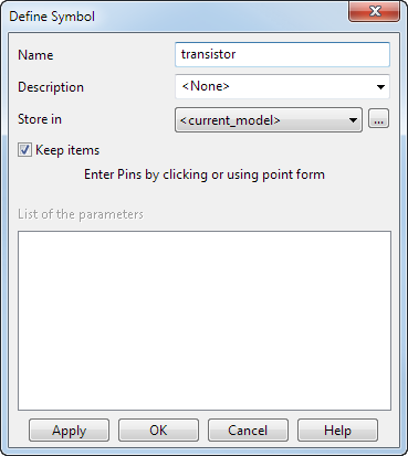 Name — Dies gibt der Symboldefinition einen Standardnamen. Ändern Sie diesen, z. B. in Transistor.
