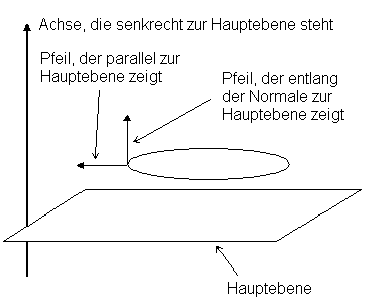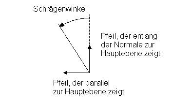 Wenn Sie Senkrecht auf Hauptebene aus den Optionen Winkel messen von ausgewählt haben, wird ein Pfeil parallel zur Hauptebene und der andere zur Achse, die senkrecht zur Hauptebene steht (siehe unten), angezeigt.