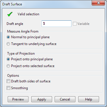 Veränderlich - Diese Option ist nur verfügbar, wenn Sie eine Formschräge aus einer zusammengesetzten Kurve erstellen. Diese erlaubt Ihnen, eine Formschräge mit veränderlichen Austragungswinkeln zu erstellen.