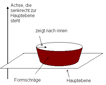 Wenn Sie eine Formschräge benötigen, die nach außen projiziert, vergewissern Sie sich, dass der zur Hauptebene parallel verlaufende Pfeil nach außen zeigt: