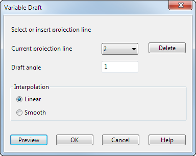 Interpolation – Sie können die Entformungswinkel entweder linear oder glatt zwischen Projektionslinien variieren.