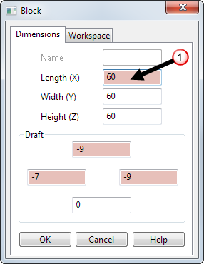 Das Dialogfeld zum Ändern der ausgewählten Regelmodelle wird angezeigt, z. B. das Dialogfeld Quader.