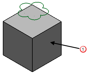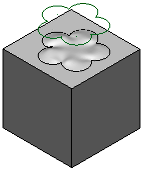 • Ausführen, um auf dem Volumenmodell eine Ausbauchung zu erstellen. Das Formular bleibt geöffnet, um mehr Drahtmodellobjekte auszuwählen und um weitere Ausbauchungen zu erstellen. Das Symbol Volumenmerkmal Ausbauchung stellt den Vorgang dar und erscheint in dem Volumenmodell-Merkmalbaum.