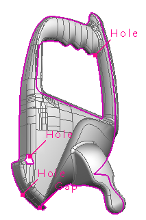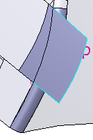 8. Vergrößern Sie den Bereich um die Lücke im Modellfenster, und wählen Sie die drei Flächen aus (siehe Abbildung unten).