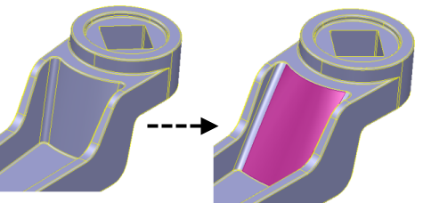 Anmerkung: Wenn Sie mehrere Flächen ausgewählt haben, können Sie einen größeren Entformungswinkel eingeben. Dieser hat möglicherweise den Konflikt einer einzelnen Formschräge mit anderer Geometrie verursacht. Konflikte werden durch eine Änderung des Mauszeigers in beim Bewegen über das Modell angezeigt.