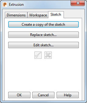 Anmerkung: Zudem werden die Erstellung von drehsymmetrischen Volumen, Extrusionsflächen, Rotationsflächen, Volumenmodell-Inselmerkmalen mit einzelnem Profil und Volumentaschenmerkmalen mit einzelnem Profil aus einer Skizze unterstützt.