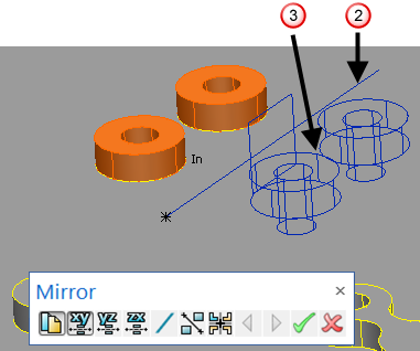 Verwenden Sie die Spiegeln-Symbolleiste, um ausgewählte Volumenflächen zu spiegeln: