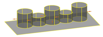 Die Pfeile der Flächennormalen der ausgewählten Oberflächen werden angezeigt. In dem unten gezeigten Beispiel sind alle Oberflächen ausgewählt: